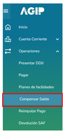 Y en el menu que se desplega al costado, seleccionar “operaciones” – “compensar saldos”